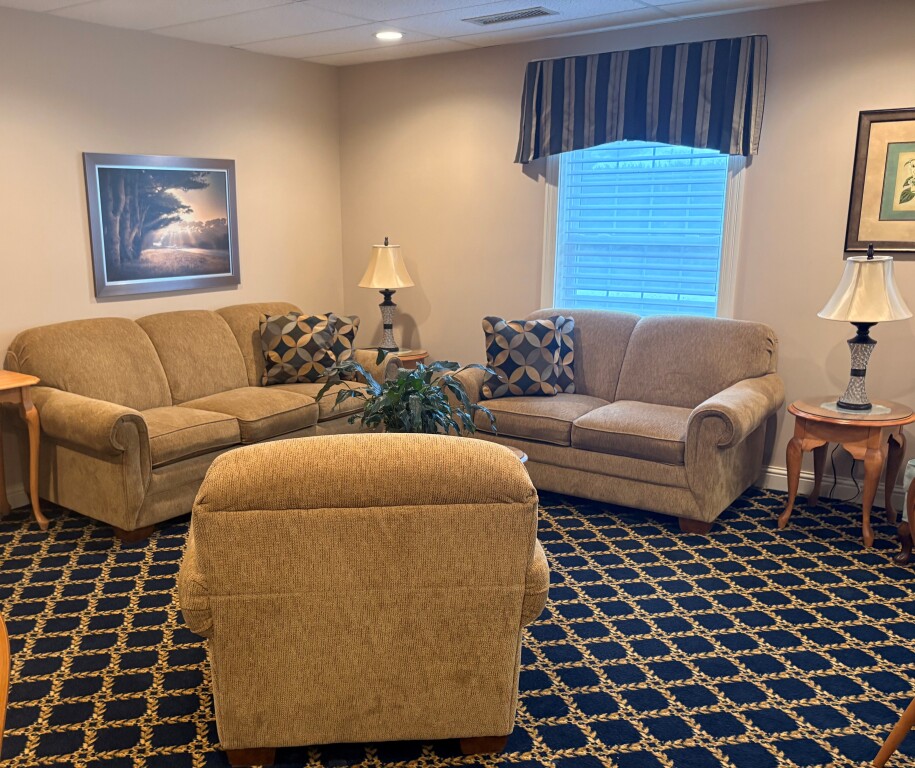 Our comfortable Family Center provides a quiet room for family members to be alone and also provides a private meeting place for families to gather between visitations and enjoy an evening meal. It is very inviting for a small reception.